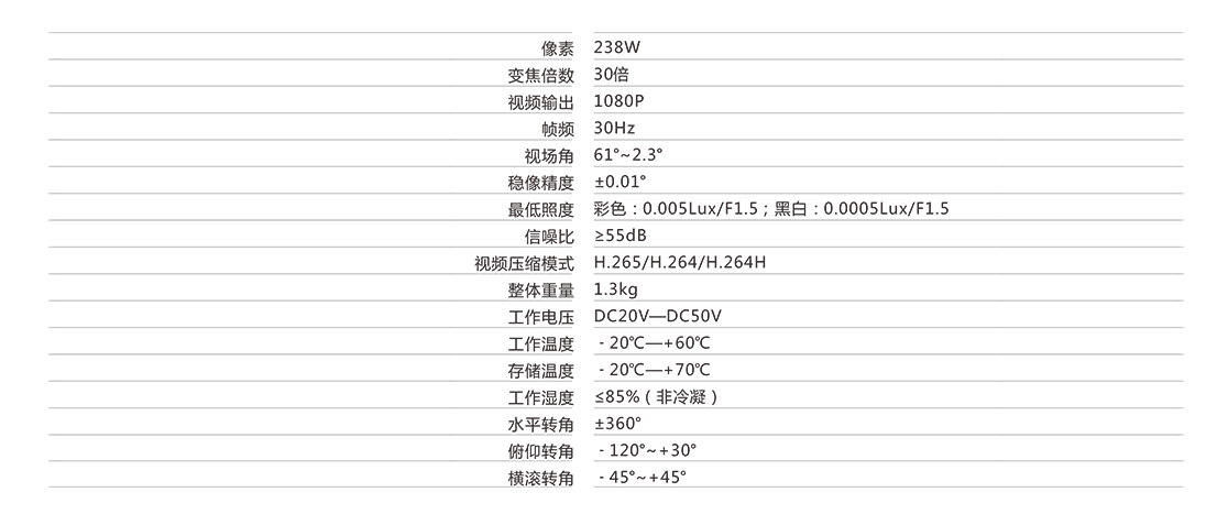 30倍可見光夜視變焦相機 高清變焦可以用于高空遠距離識別目標,成像清晰,應用于公安處突、電力巡檢、交通執法、 目標車輛號碼識別、禁毒緝私等。